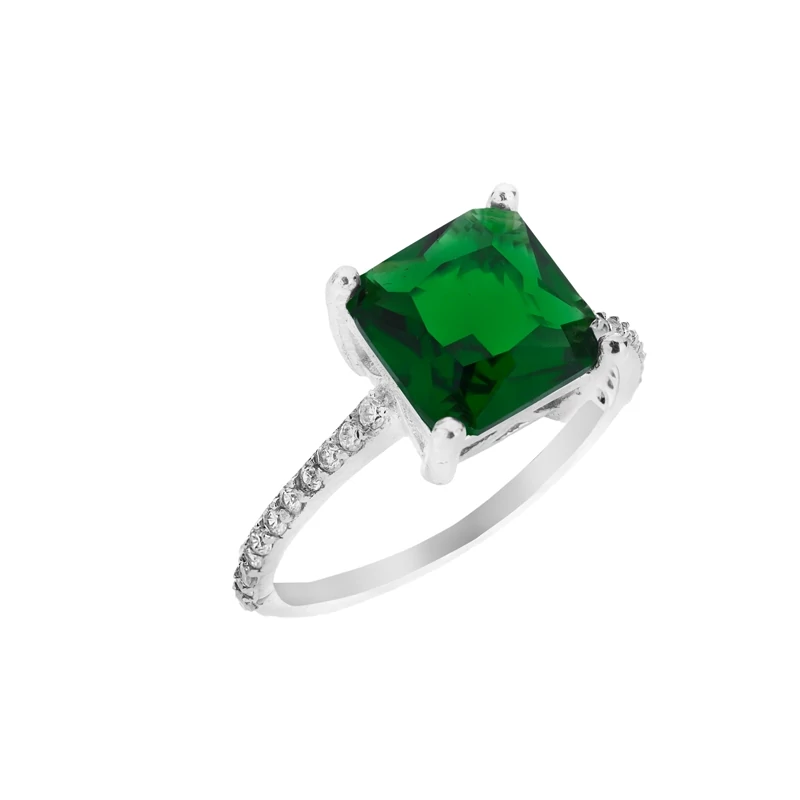 انگشتر نقره زنانه نگین سبز زیرکونیاشمیم سیلور102065