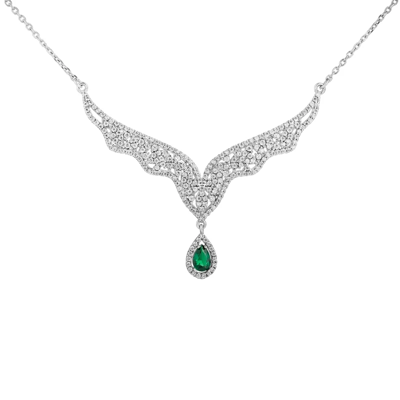 گردنبند نقره زنانه با سنگ قیمتی سبز و زیرکونیا 10001592