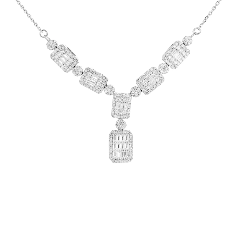 گردنی نقره با نگینهای باگت و زیرکونیا 1000015116