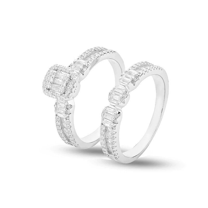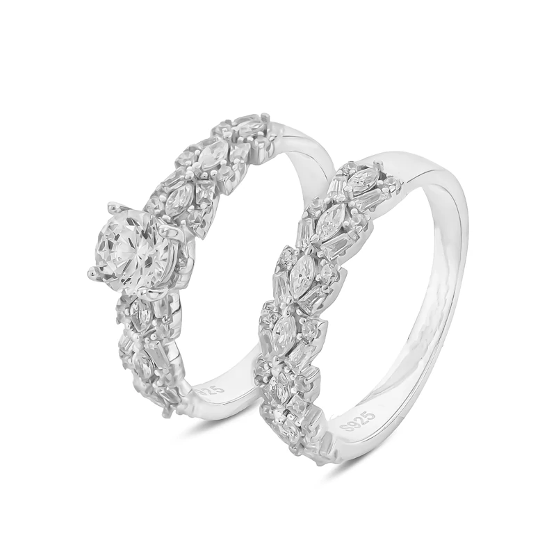 ست انگشتر و پشت انگشتر نقره زنانه نگیندار عیار 925