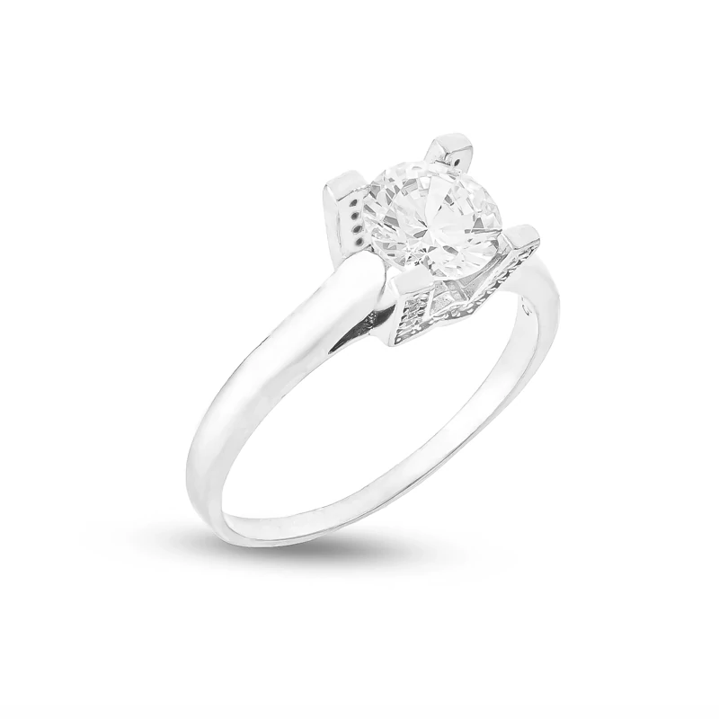 انگشتر نقره زنانه طرح کلاسیک نگین درشت درخشان عیار 925