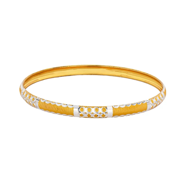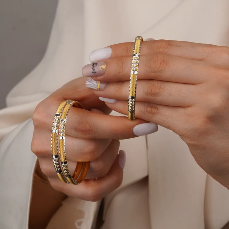 ترکیب رنگ طلایی در بخش داخلی و جزئیات نقرهای در سطح بیرونی، تضاد زیبایی ایجاد کرده که حس لوکس و متمایزی به این مدل میبخشد. این ویژگی باعث میشود النگو بهراحتی با انواع زیورآلات ست شده و در استایلهای مختلف بدرخشد.