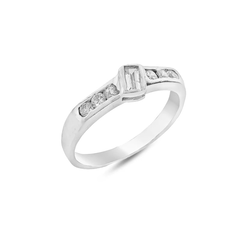 کد کالا: 111000022255وزن: 1.52 گرمعیار: 925جنس فلز: نقرهنوع سنگ: زیرکنیا سفیدنوع برش نگین: مستطیلی (Baguette Cut) + برلیان (Round Cut)چیدمان نگین: تکنگین مرکزی با نگینهای ردیفی در رکابسایز: 4.5 (معادل 49)نوع رکاب: نیمهنگین، طراحی مینیمال مدرنپرداخت سطح: براق و صیقلیرنگ فلز: نقرهایحساسیتزا: خیر (فاقد نیکل)مناسب برای: بانوان