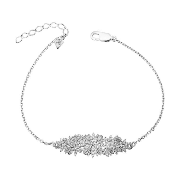 دستبند نقره زنانه طرح برگ با نگینهای میکروست و باگت 100015111