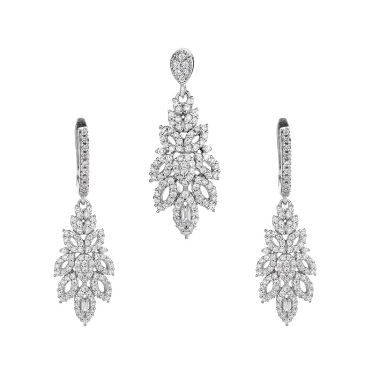نیمست نقره زنانه طرح شاخهای با نگینهای میکروست و باگت 10150064