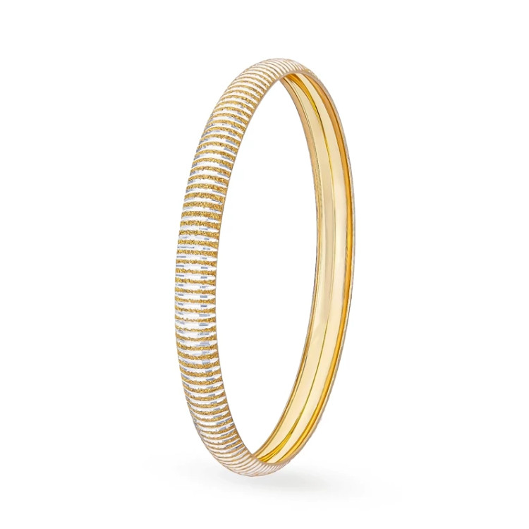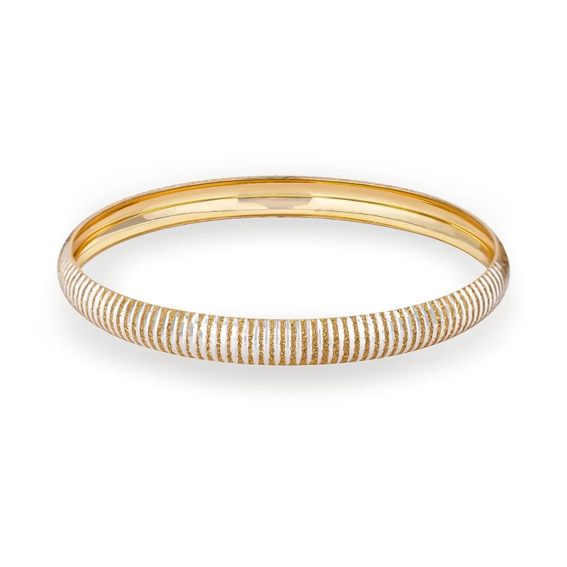 فلز: نقره عیار 925نوع آبکاری: آبکاری طلایی + رودیوم برای افزایش دوامسبک طراحی: مدرن کلاسیک دو رنگجلوه کار: شیارهای افقی منظم با بافت درخشان
